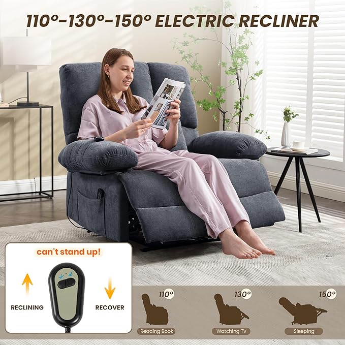 - POWER RECLINER - This power recliner chair expands the footrest and backrest 90°-145° with the remote control, so you can stay in the center at any angle and completely relax, perfect for activities such as watching TV, sleeping and reading.