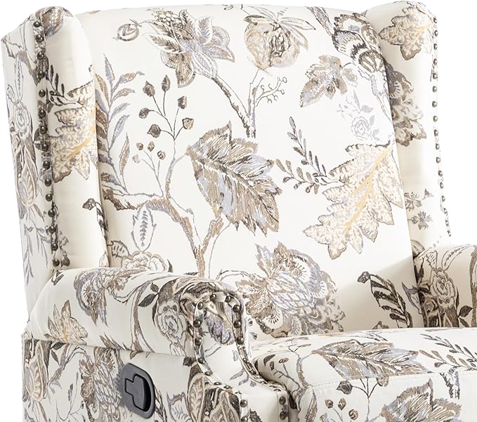 UIXE Swivel Rocker Manual Recliner Chairs Set of 2, Wingback Swivel Glider Fabric Nursery Reclining Sofa Chair, High Back Upholstered Arm Chair for Living Room Bedroom - Beige Plants