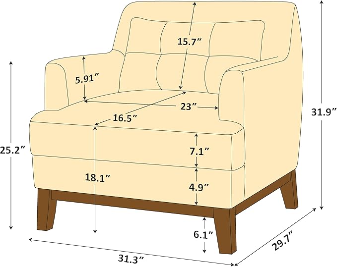 - Compact yet Comfortable – With overall dimensions of 31.3"W x 29.7"D x 31.9"H and a spacious 23" seat width, this chair provides generous seating without taking up too much space — ideal for apartments, reading corners, or bedrooms.