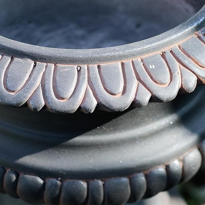 - CLASSIC DESIGN: Elegant garden urn planter featuring ornate leaf pattern details, fluted rim, and traditional pedestal base for timeless decorative appeal