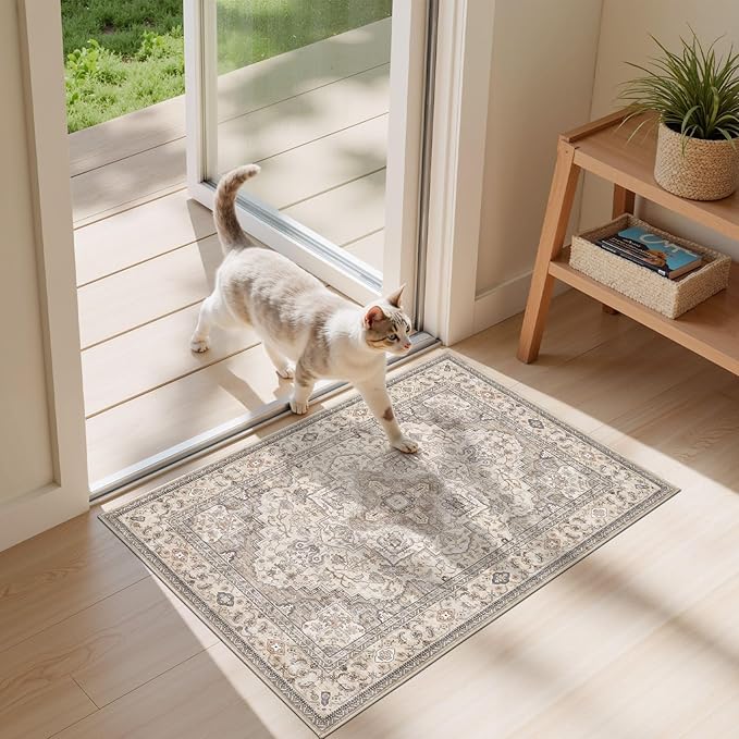 Washable Area Rugs for Living Room -2x3 Neutral Vintage Distressed Floral Farmhouse Boho Large Soft Floor Rug Indoor Non Slip Carpet for Bedroom Dining Room Office - Brown/Multi