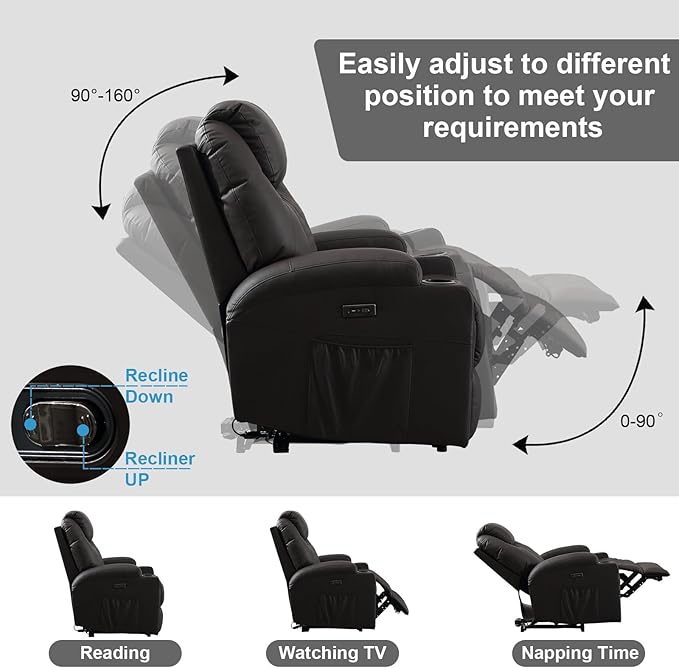 - Power Recline: This recliner can function as a versatile lounge chair for daily relaxation and as a luxurious home theater seat. With an electric button for smooth reclining between 100° to 150°, feature ensures effortless operation for users of all ages