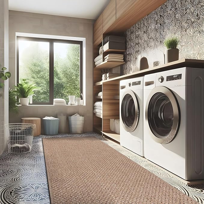 - [ EASY JUTE RUG ] Experience the enchantment of a resilient rug mimicking the appearance of natural jute, courtesy of our latest Easy-Jute rugs. (Jute-free in reality) Crafted from secure polypropylene, these rugs are resistant to cracking, ensuring they remain free from scratches, shedding, or unraveling over time.