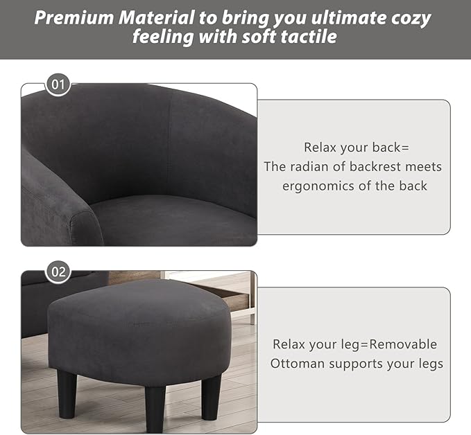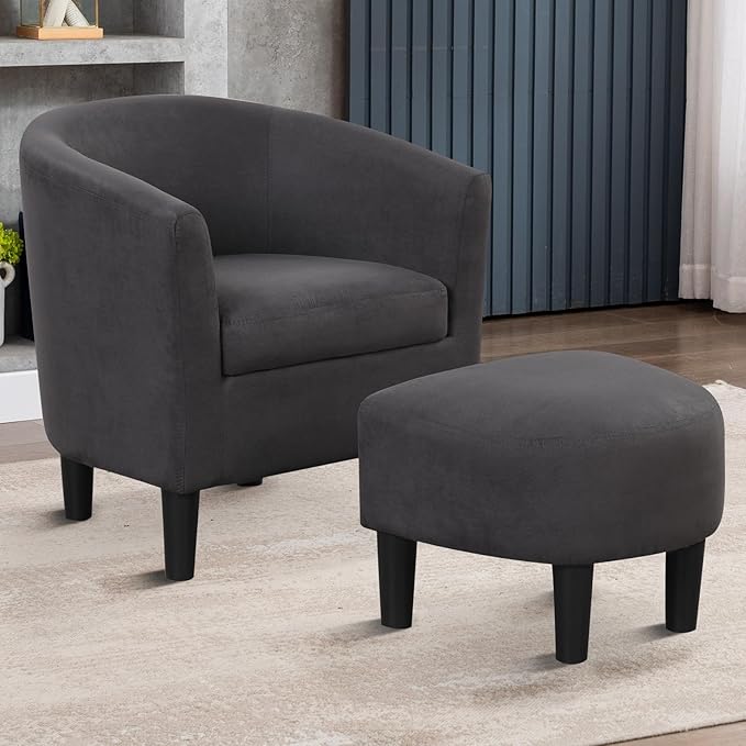 - Accent Chair with Ottoman - Our barrel chair equipped with a soft ottoman. You can rest your feet on it to experience the ultimate enjoyment and sleeping. The ottoman also can be used as stool alone.